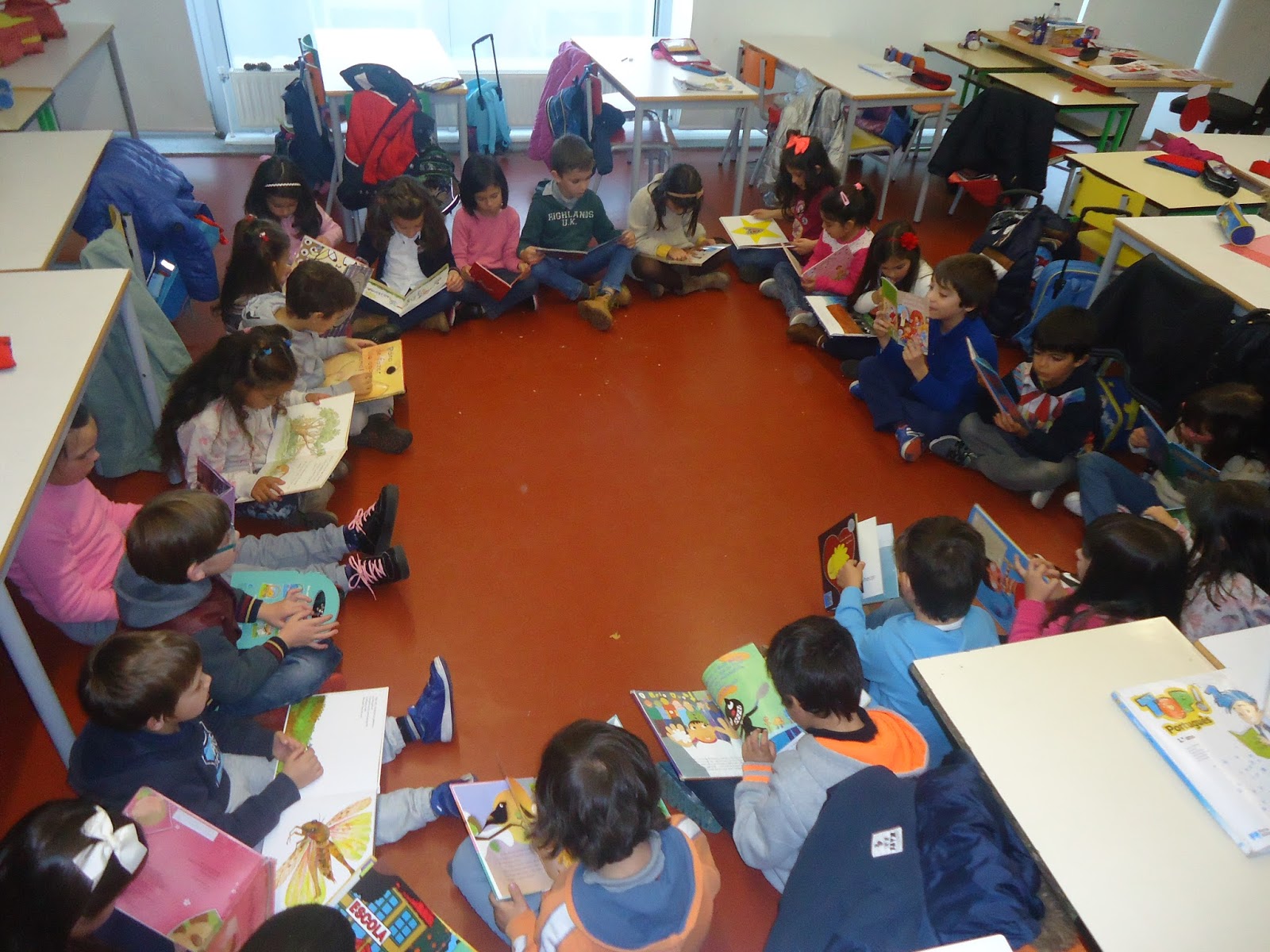 hora para os alunos partilharem os livros preferidos trazidos de casa.